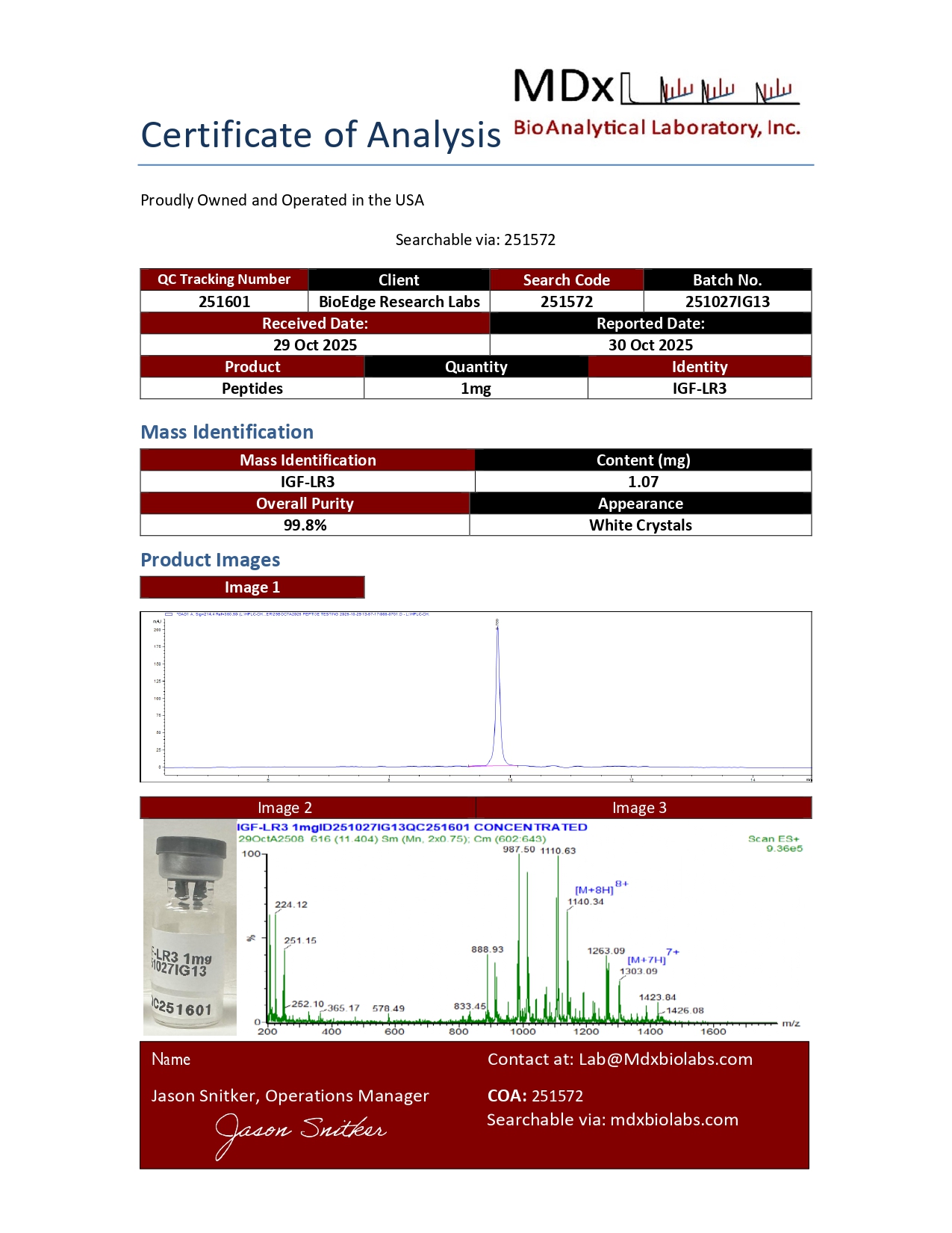 IGF-LR3 is supplied by BioEdge Research Labs exclusively for laboratory testing and in vitro research.