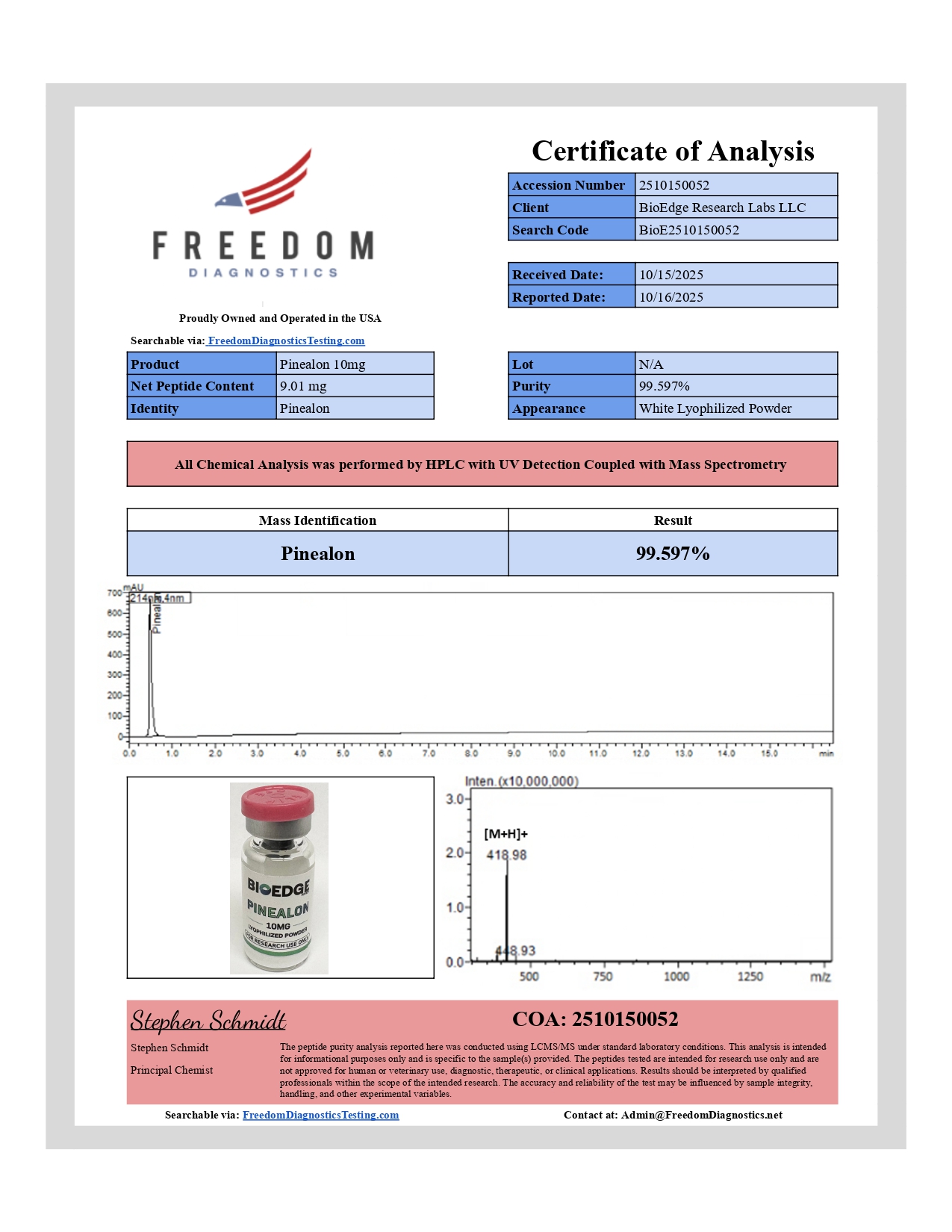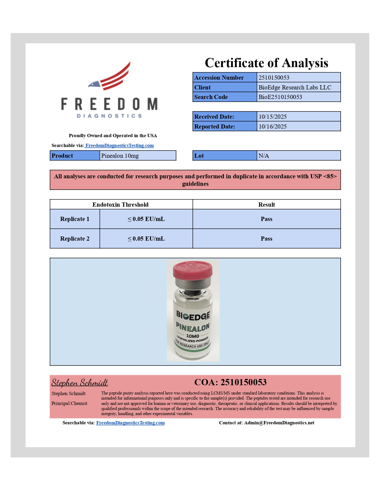 Pinealon is supplied by BioEdge Research Labs exclusively for laboratory testing and in vitro research.