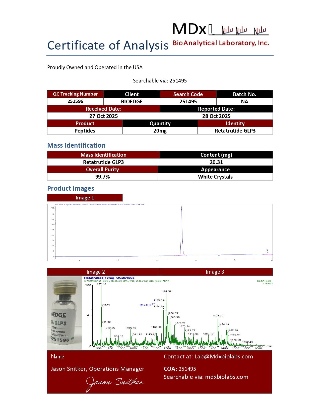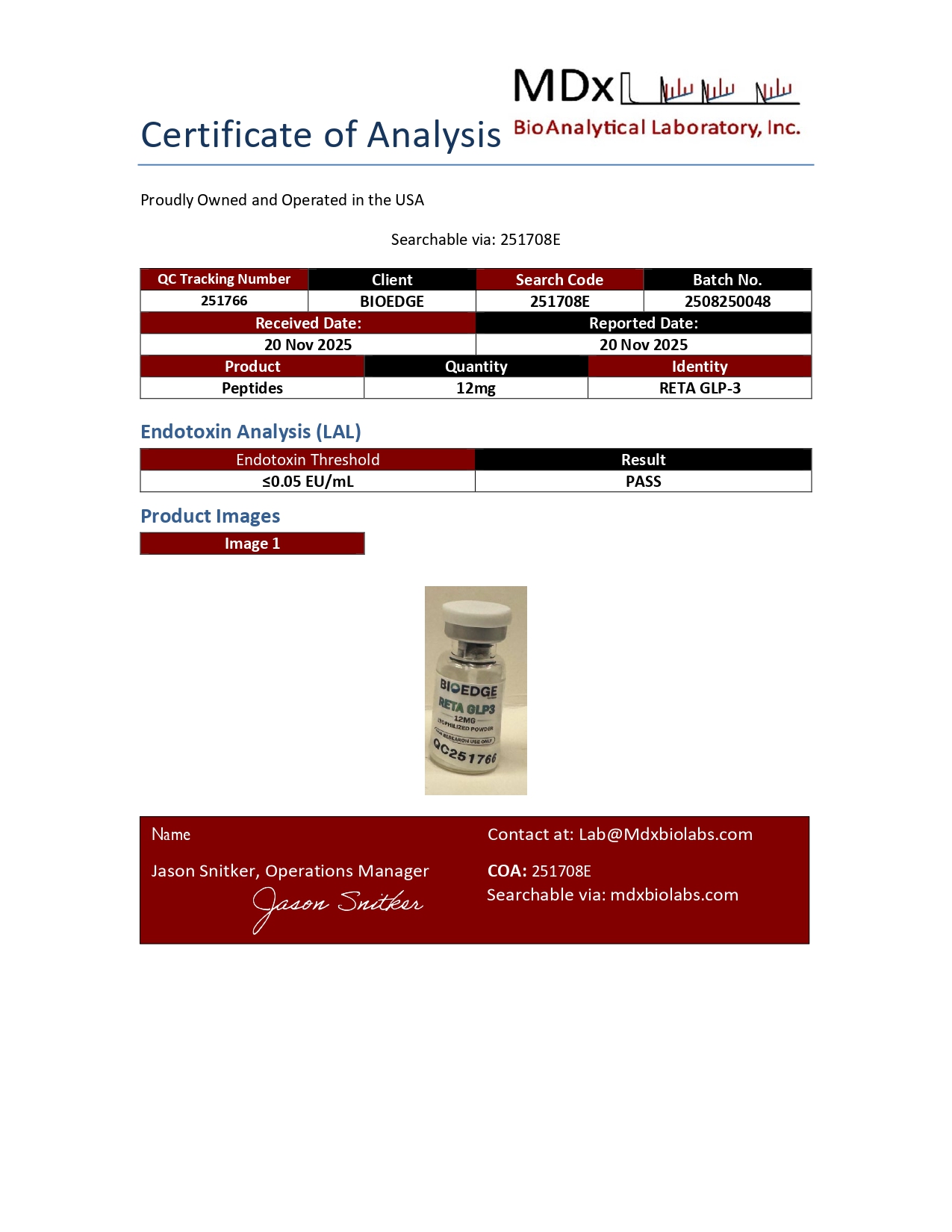 At BioEdge, we are committed to providing research professionals with the highest quality peptides on the market. Every compound we supply is manufactured in a cGMP-certified facility, undergoes rigorous third-party testing, and is intended strictly for in vitro or laboratory research use only.